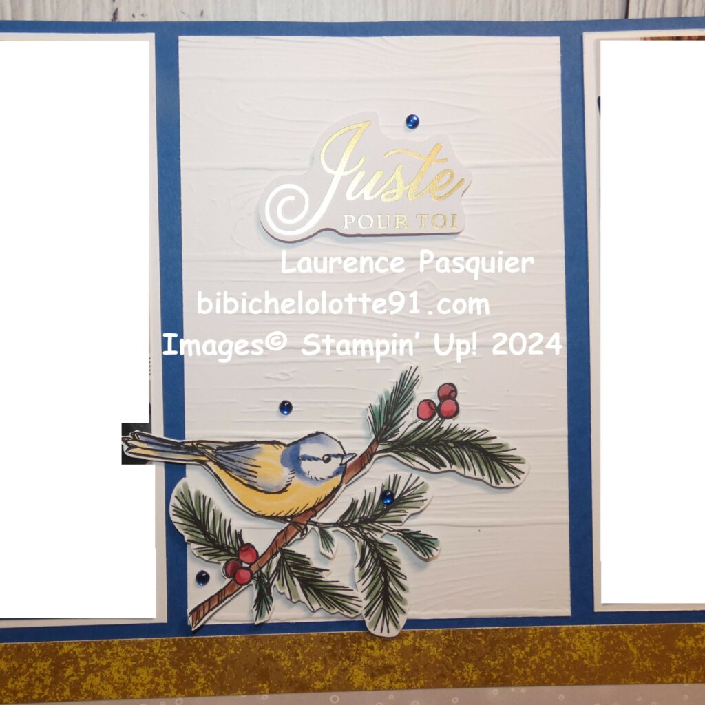 j’ai aussi utiliser un ancien papier or, découper mes oiseaux qui sont sur certaines feuilles,