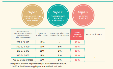 Du 9 octobre au 9 novembre, si vous accueillez un événement de loisirs créatifs dont les ventes atteignent au moins 300 €(prix catalogue hors frais de port) vous obtiendrez 3 % de Primes créatives supplémentaires.