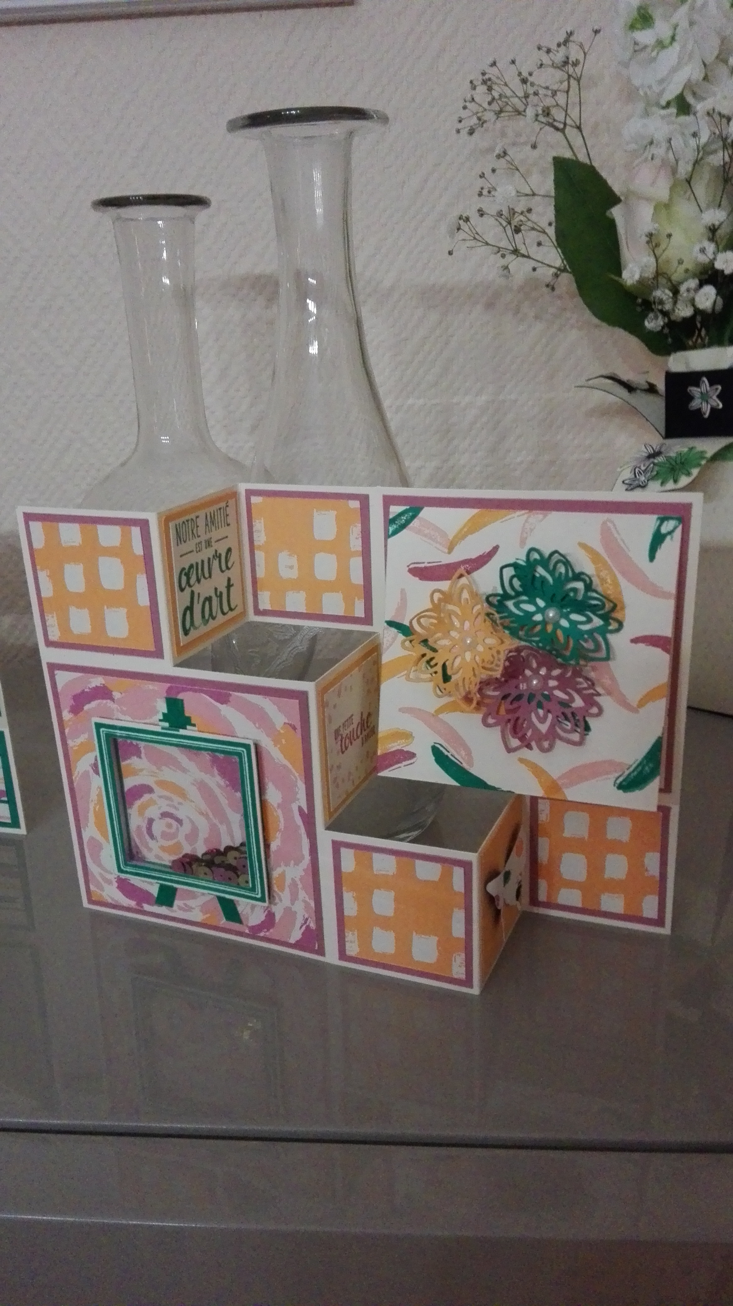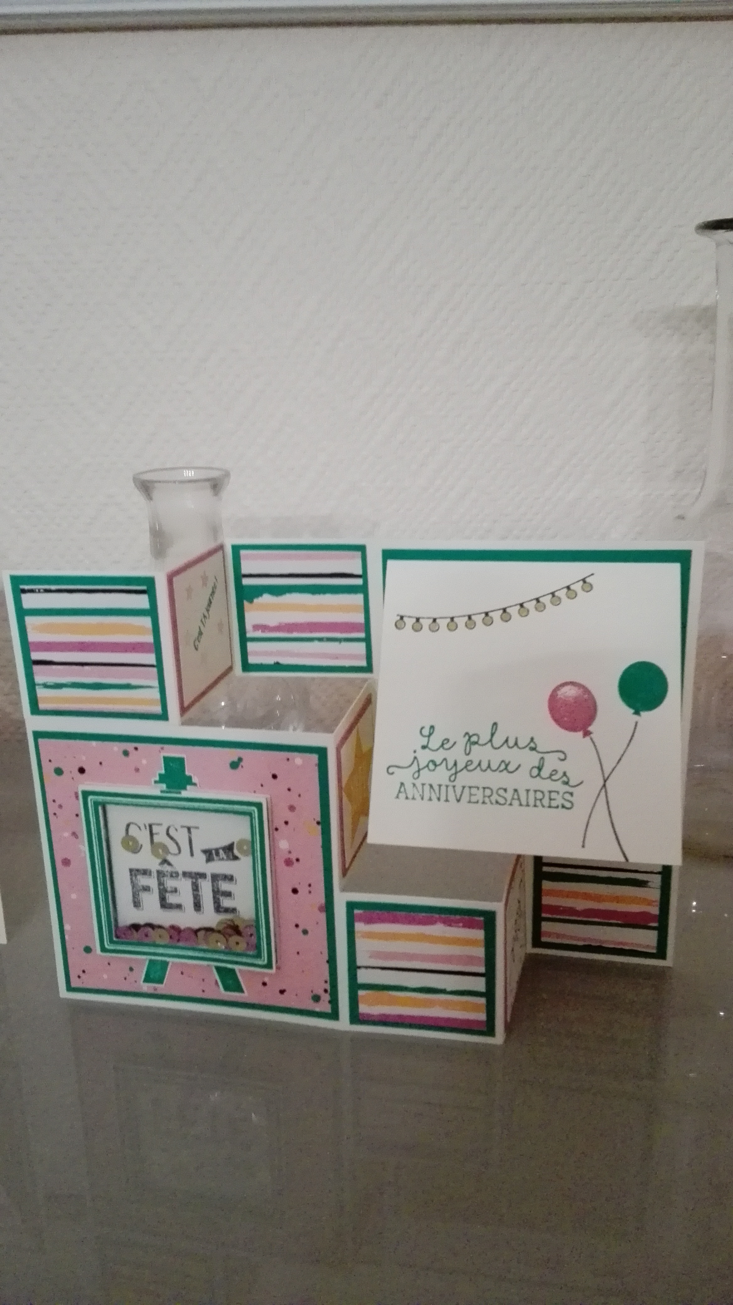 Carterie Carte de chez Marianne 6 juillet 2016 / re je vais faire un article juste pour vous montrez les réalisation des filles avec le papier Palette enjouée chacune dans son style elle on adorer s’amuser a faire des Shaker box maintenant j’espere qu’elles vont en refaire plein Partager :Partager Partager sur Facebook(ouvre dans une nouvelle fenêtre) Facebook Partager sur X(ouvre dans une nouvelle fenêtre) X Partager sur Pinterest(ouvre dans une nouvelle fenêtre) Pinterest Publications similaires : carte escalier carte duo fold Carte ou mini atelier de Juin