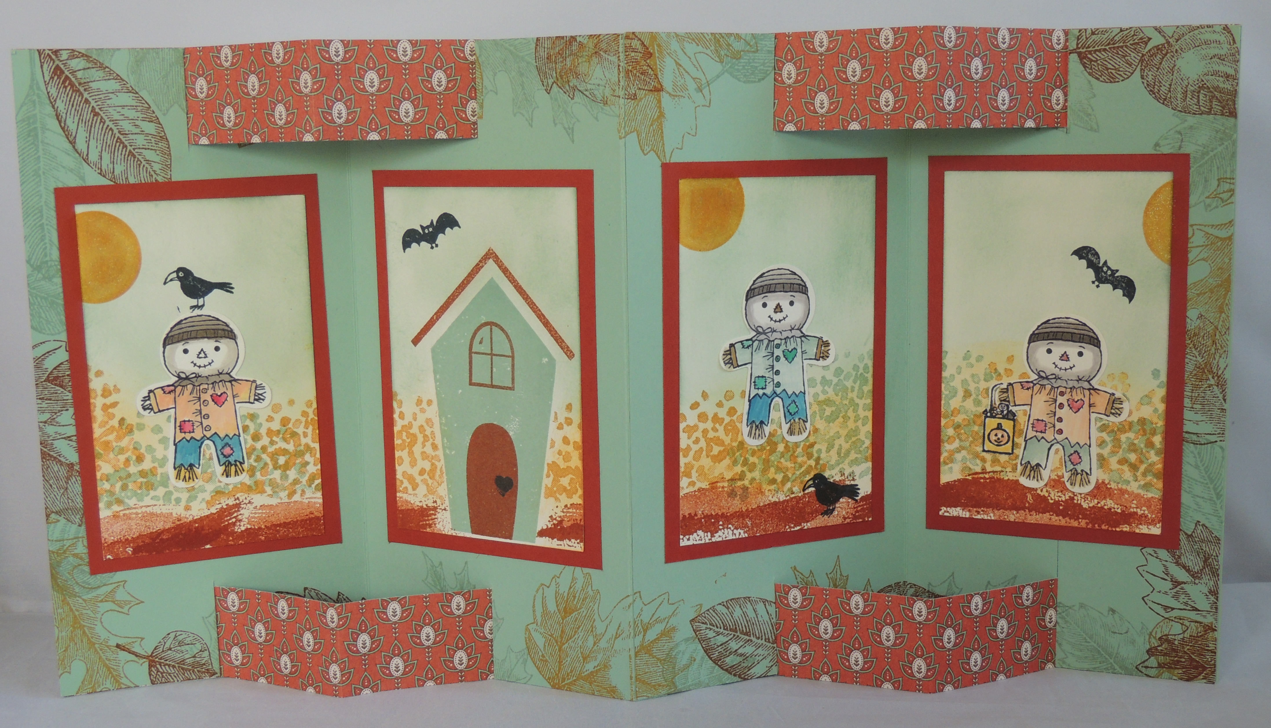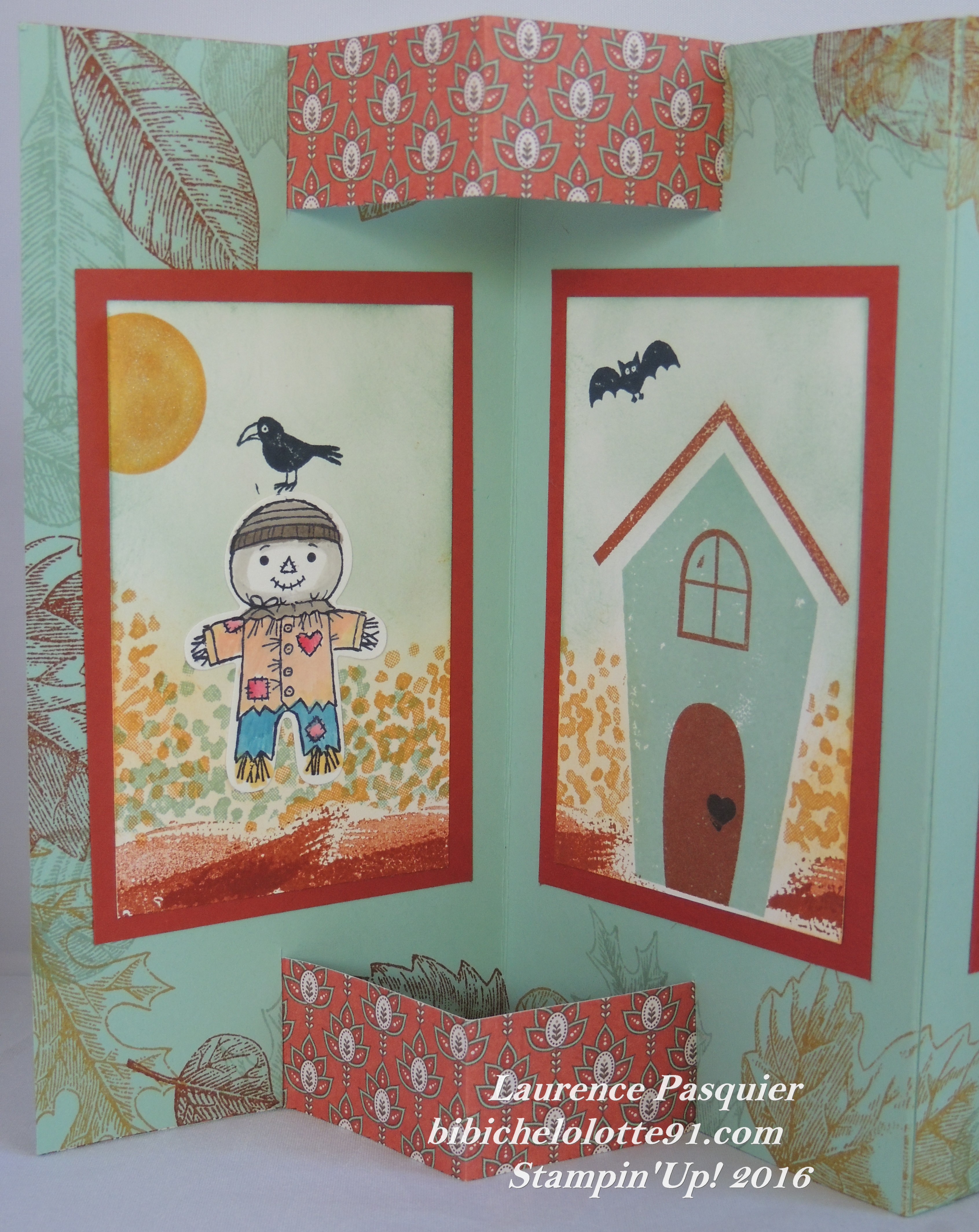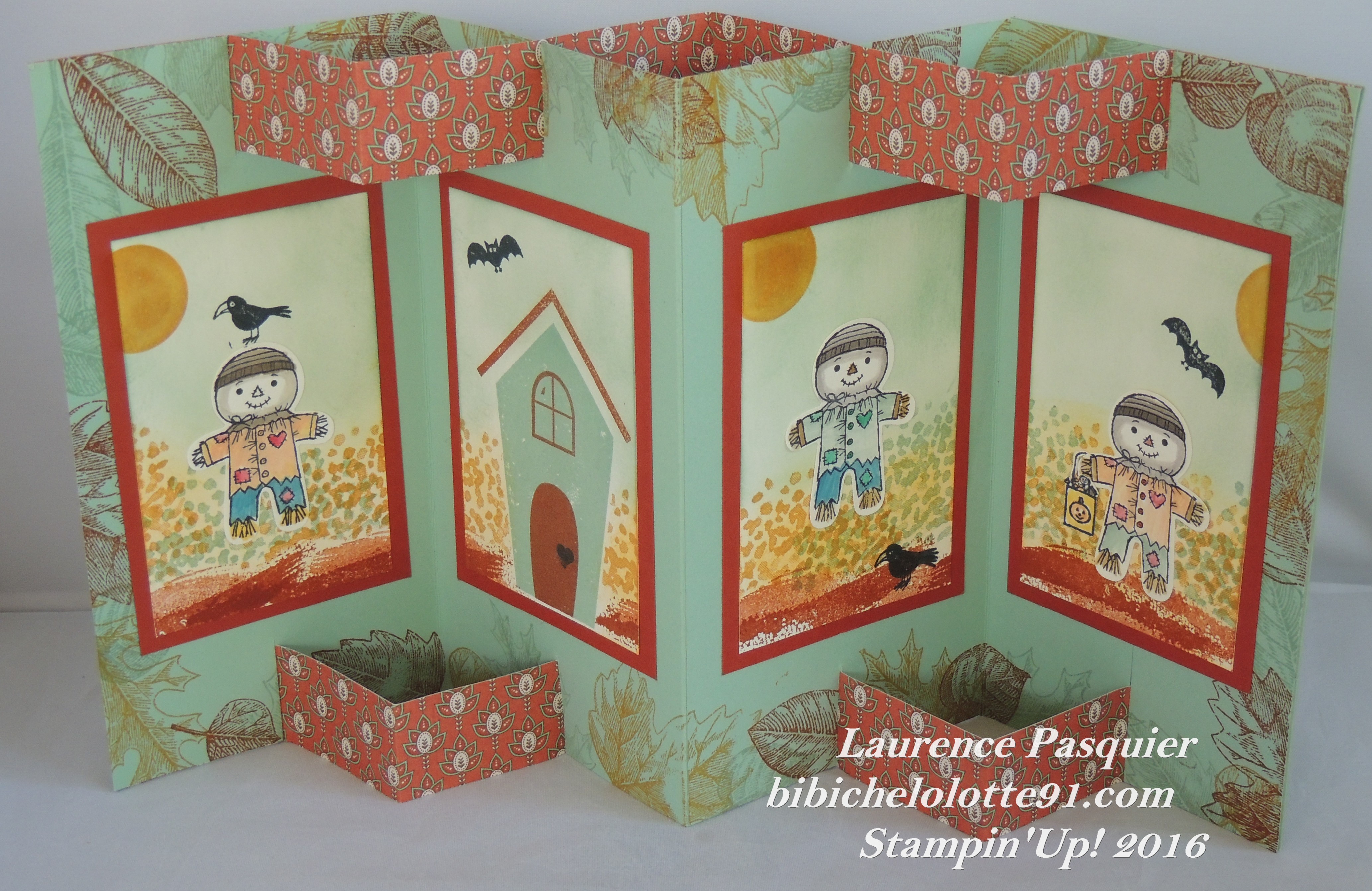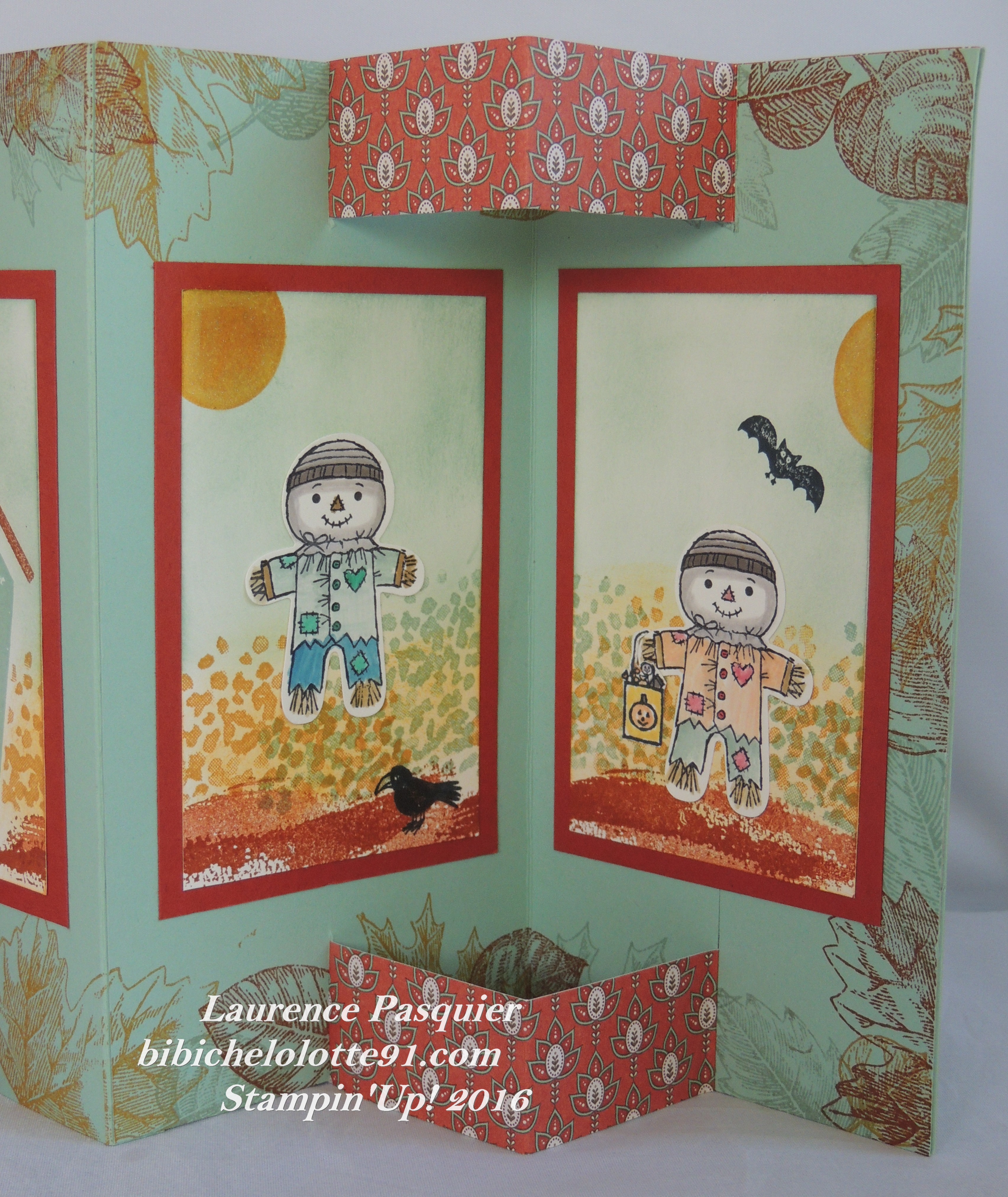 Adorables ces petits épouvantails ! Joli modèle de carte ! Bravo !