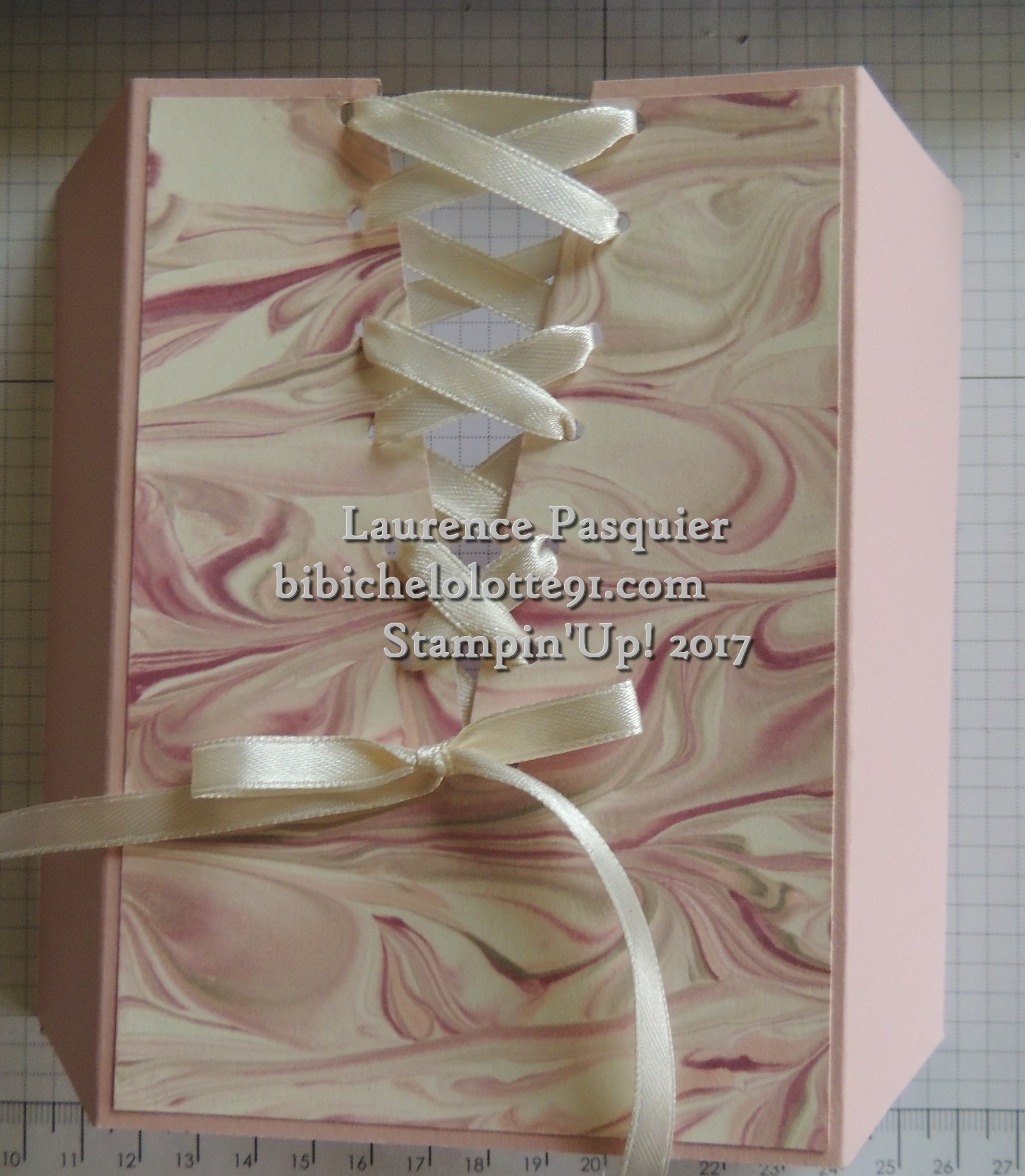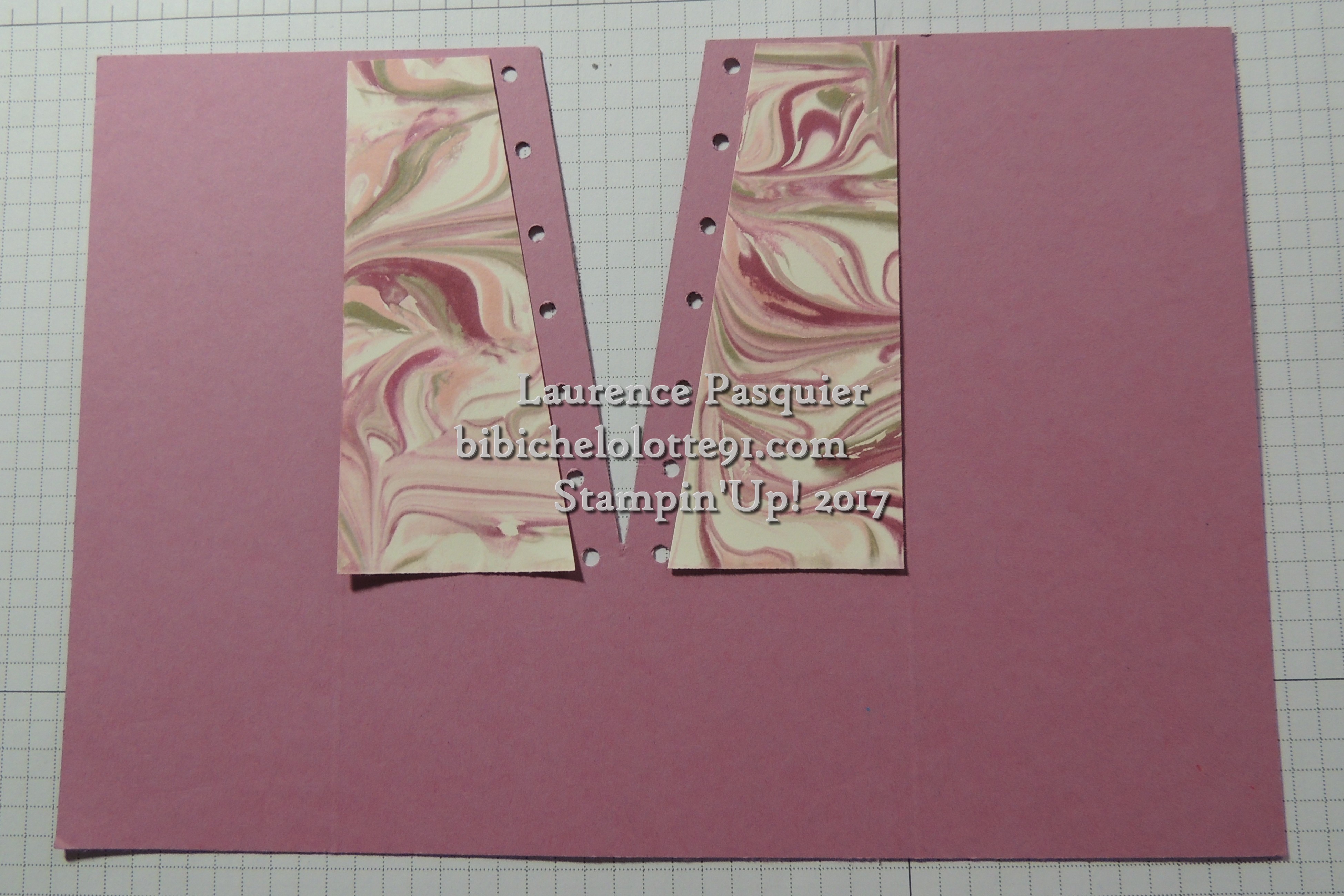 pour le deuxième modèle avant de faire mes trous je colle une carte sur le devant de 9.5 cm x 14 cm