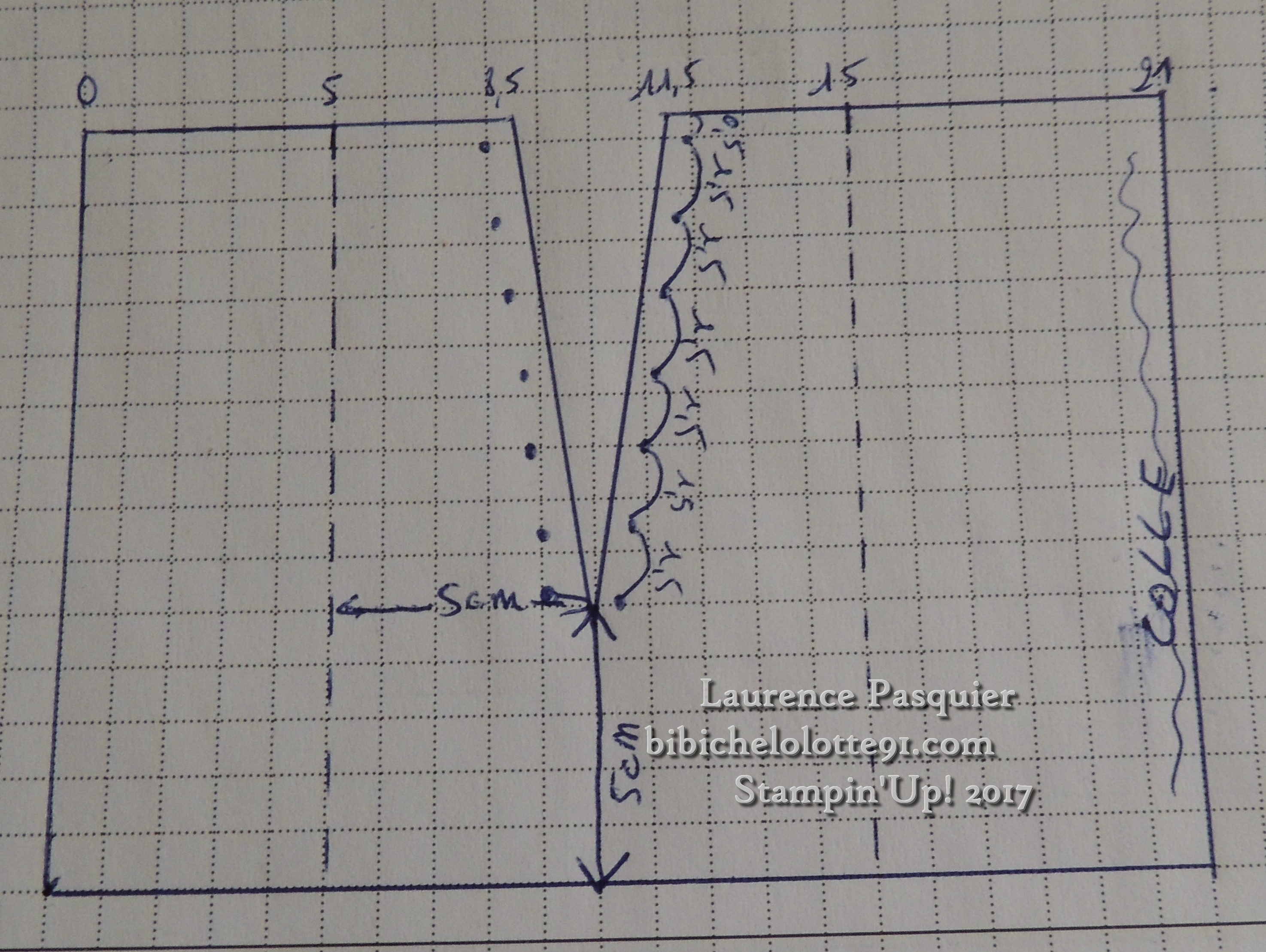 marquer les plies a 5 – 15 et 20 cm sur les 21 cm