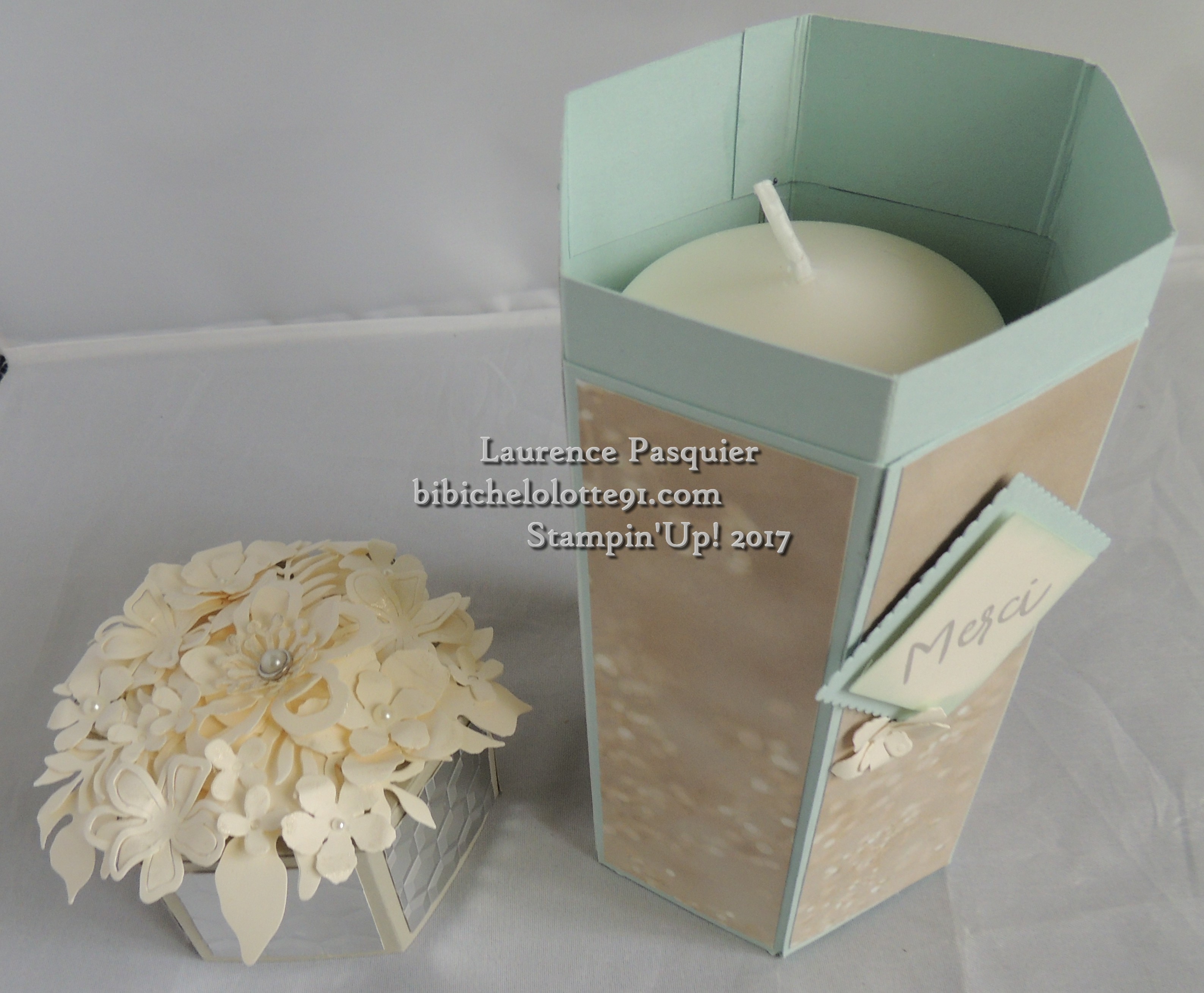 je confirme magnifique boite avec sa bougie décorée que Laurence m’a généreusement offert lors de l’atelier ou nous avons fait une très jolie carte twist