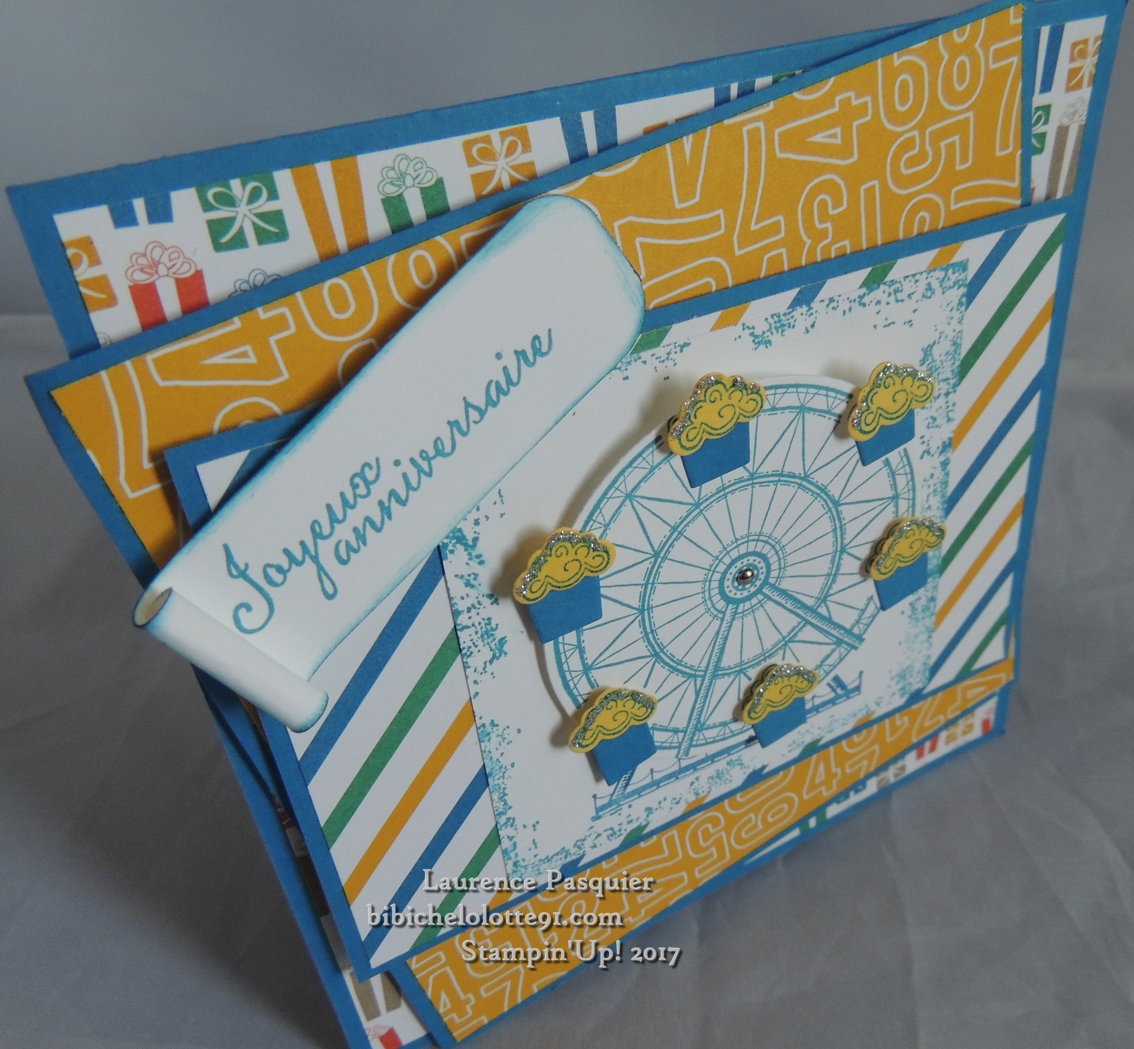 super carte, pas gagné de la réaliser du 1er coup, mais ensuite un plaisir de la refaire avec d’autres papiers ou tampons