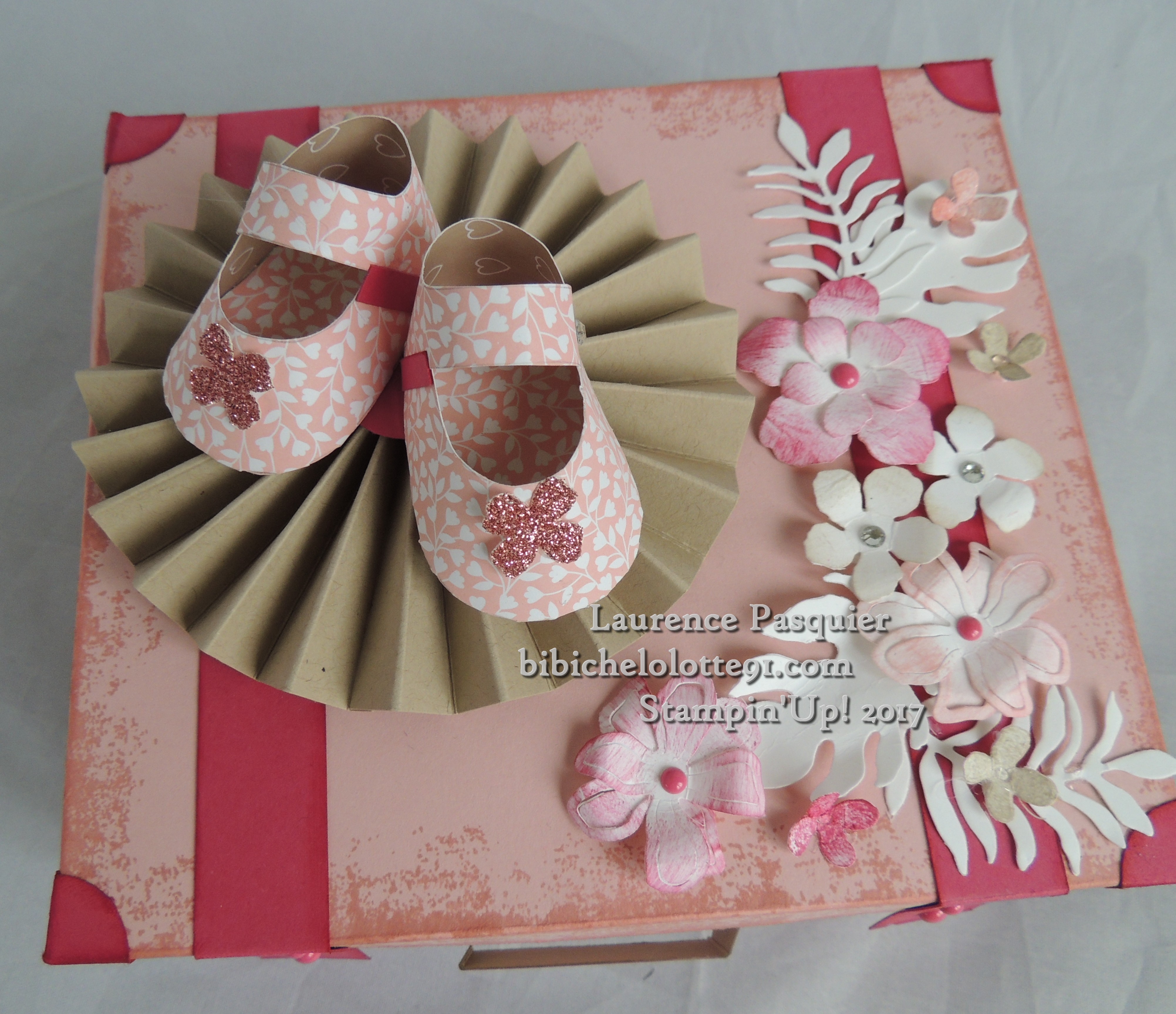 j’ai réaliser la valise fait le tampon pour le vieillir un peu, quelques fleur avec les framelits paysagiste coloriser au doigts éponge