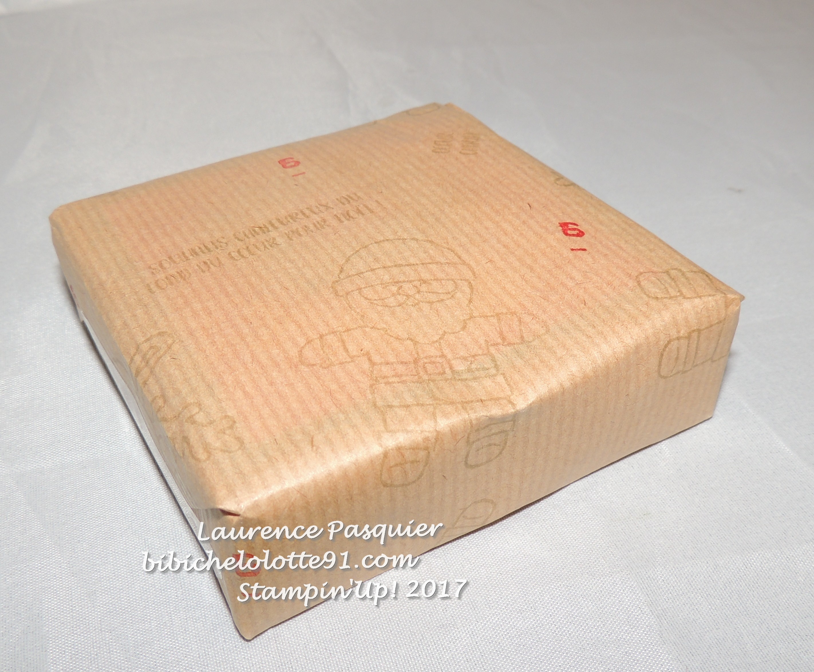 un emballage dans du papier kraft tamponner avec un super père noël