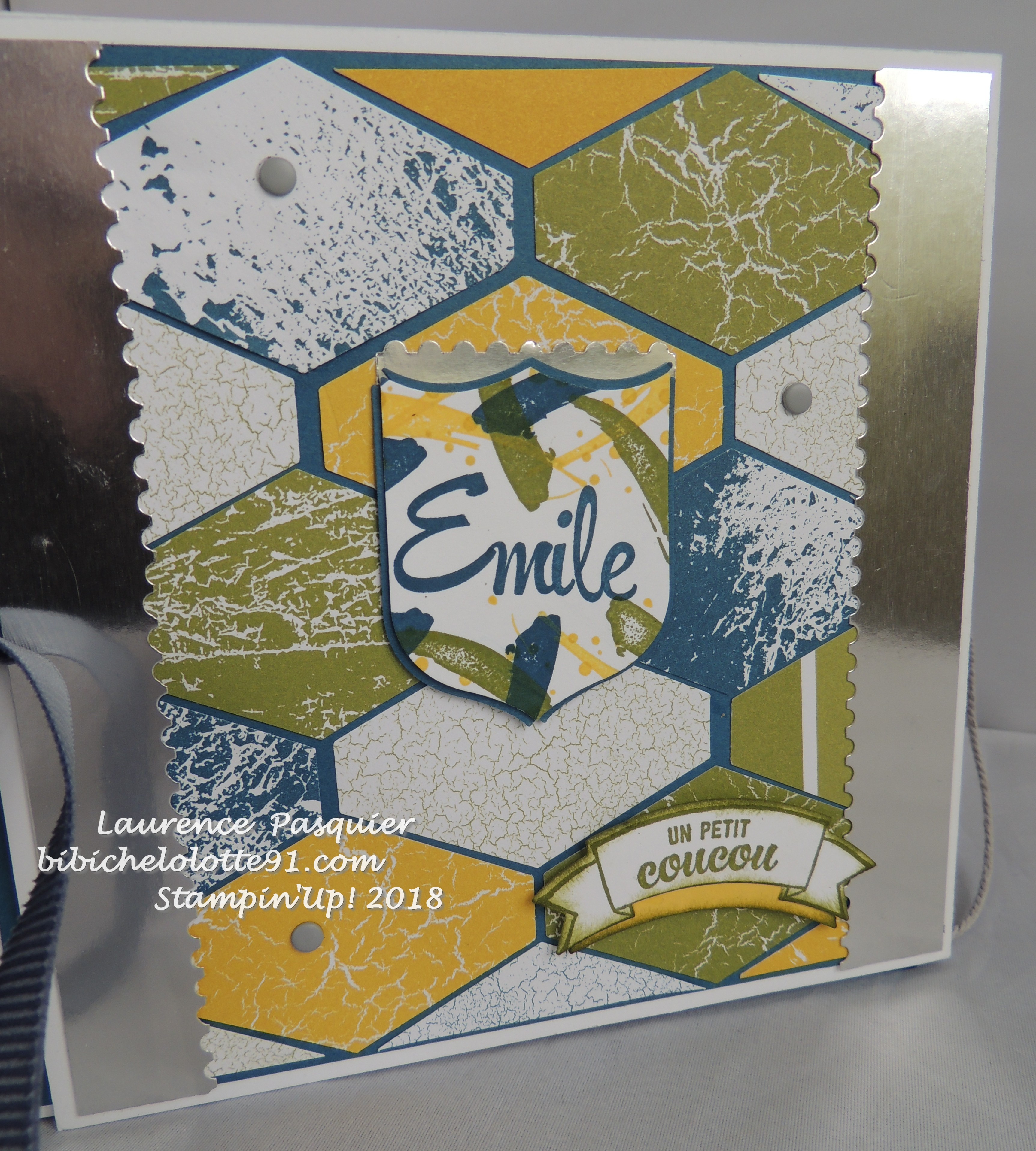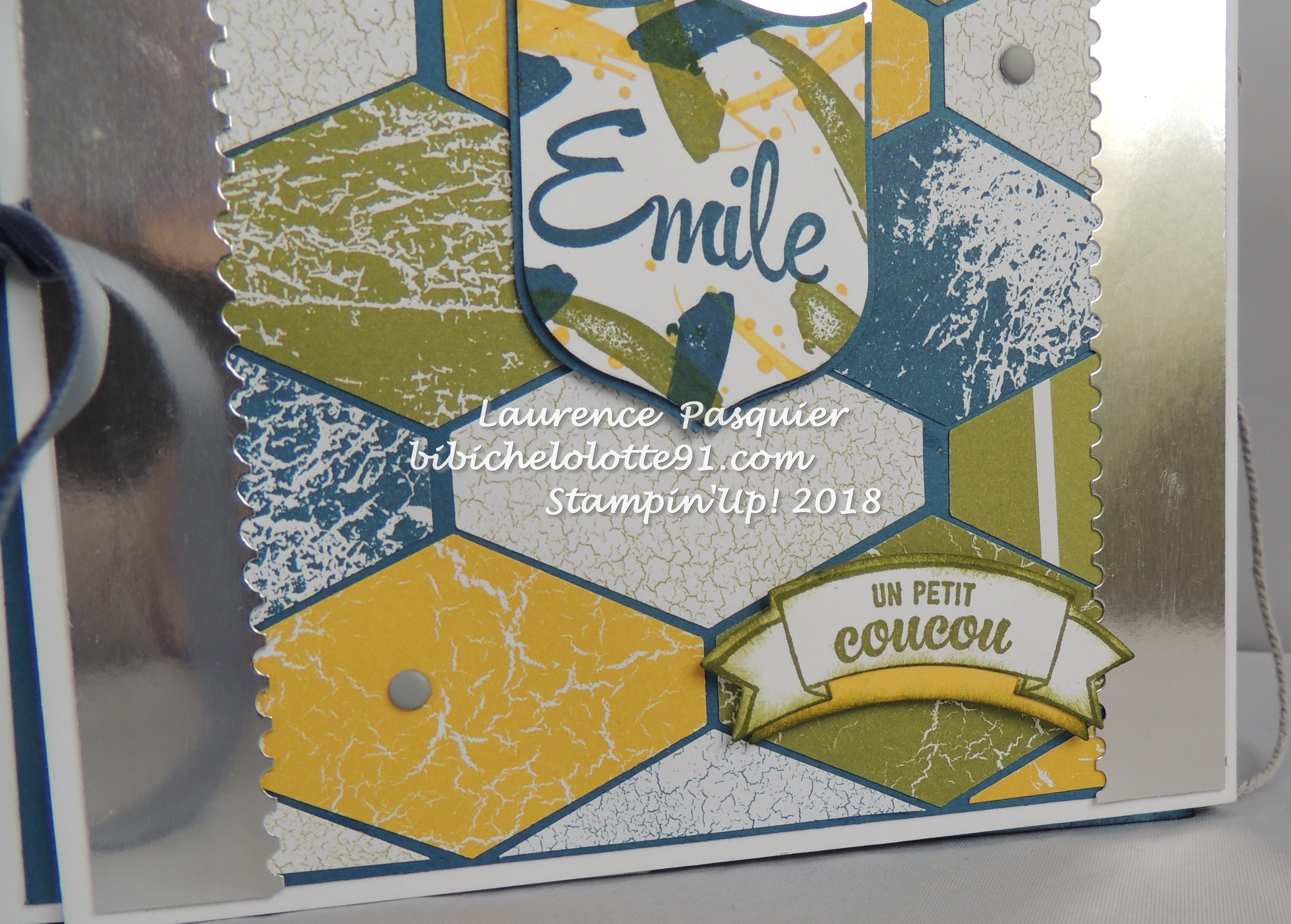 sur le papier métallisé argent j’ai fait la bordure avec la perforatrice de billet, j’ai récupéré un morceaux pour mettre au dessus de l’insigne