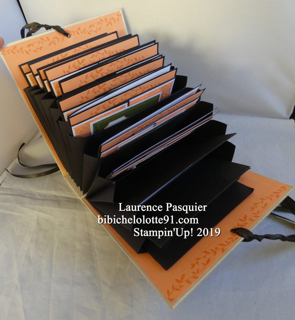 j’ai adorer le faire, je vais voire pour en refaire un autre, je ne vous mettrais pas la liste de mes fournitures car cela serais beaucoup trop long, mais tout est Stampin’Up! sauf le carton et la feuille de papier pour recouvrir