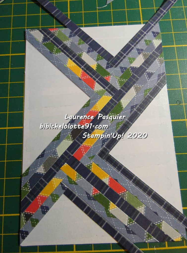 On va coller les bandes pour former des chevrons attention bien suivre Le croisement des bandes