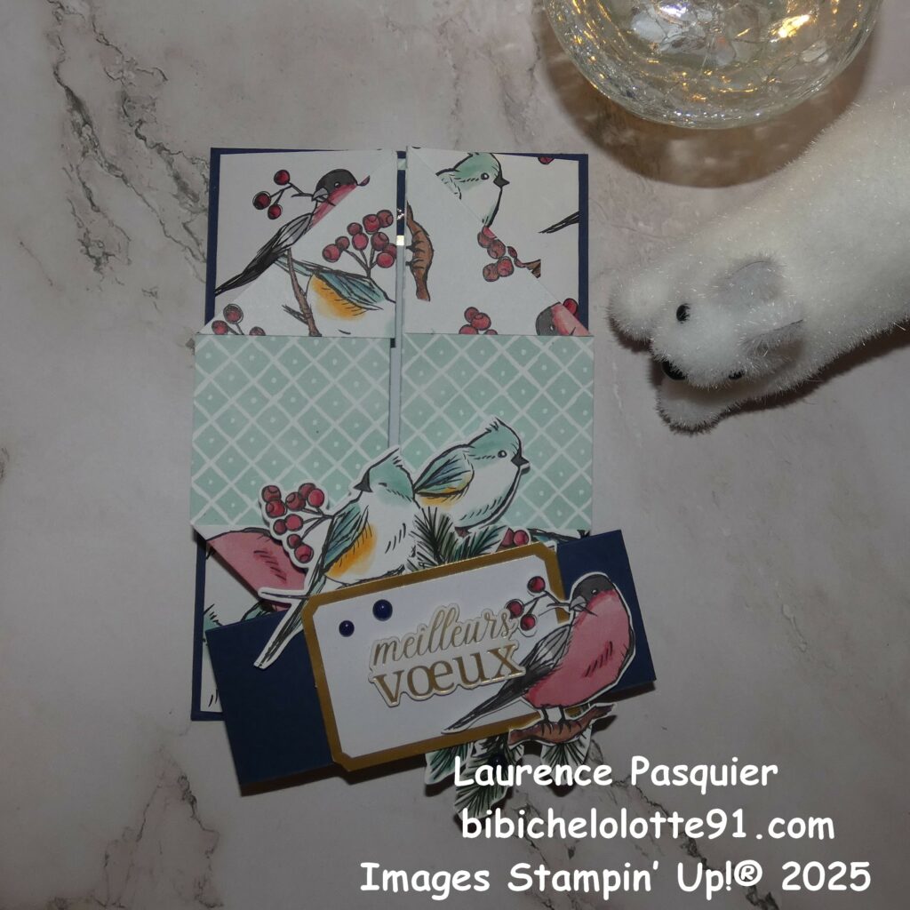 Aujourd’hui, je vous présente un pliage de carte toute en élégance. Il est réalisé d’après une magnifique idée de ma marraine Aude @missscrap.